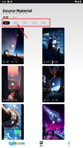 在素材界面中,找到视频分类板块,点击其中的趣味标签,即可筛选出趣味类的视频素材。
