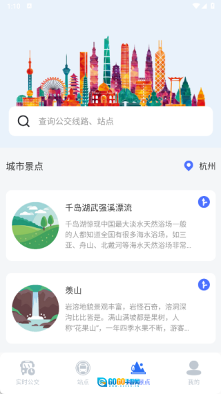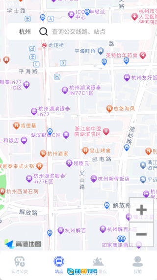 在实时公交功能里,能够查询公交线路与站点信息,还可以实时查看周边的站点情况。