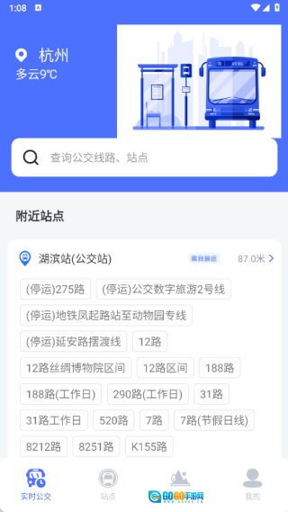 可以迅速定位附近的公交站点,清晰展示途经的每条公交线路,同时支持查询具体线路的首末班发车时间、票价标准以及该线路所有站点的详细信息。