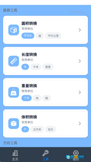 在工具页面里,你能够使用面积转换、长度转换、重量转换、体积转换之类的功能。