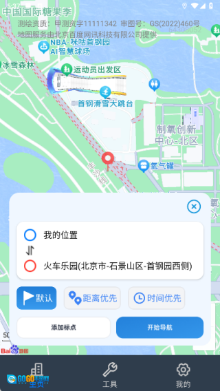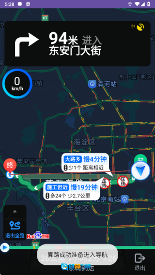 点击“开始导航”按钮,就能获取具体的路线指引,以及路线的全程距离等相关信息。