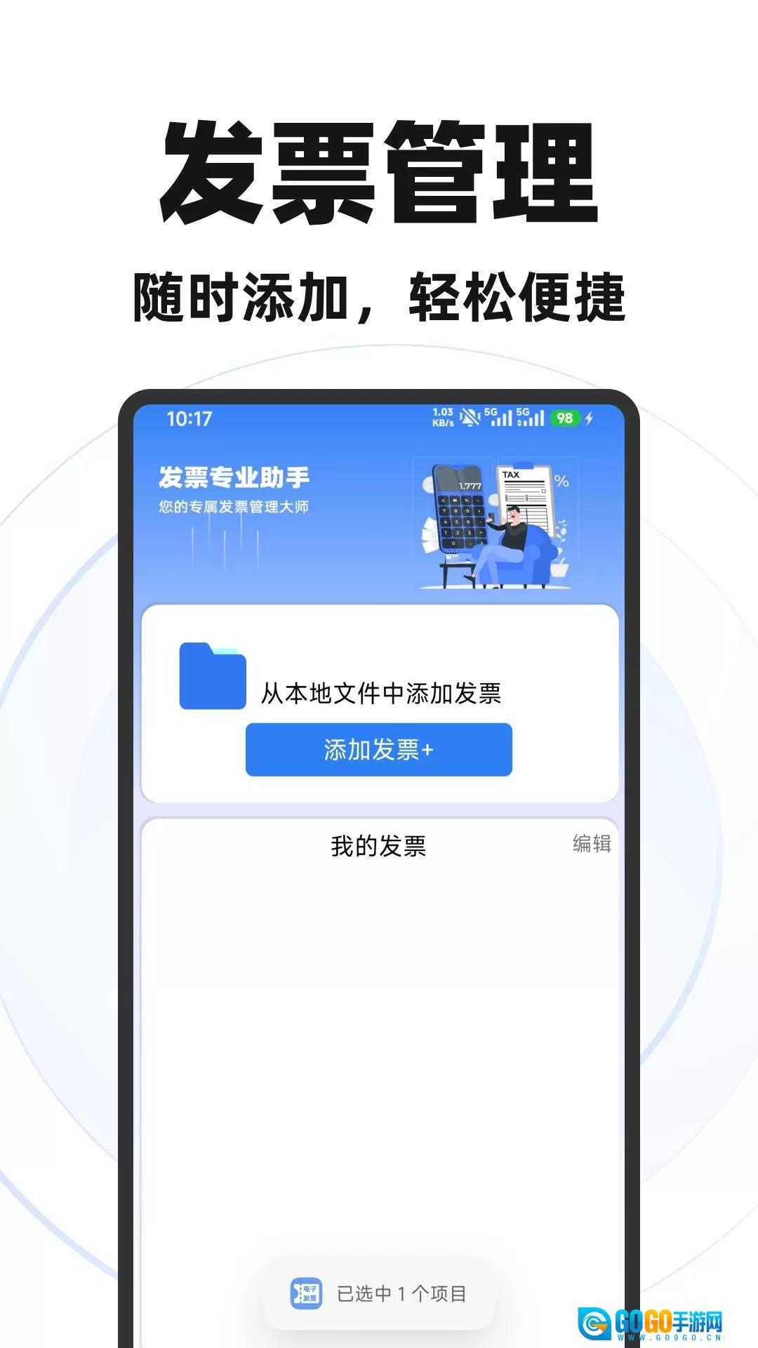 这款应用的核心功能在于对各类电子发票文件进行管理,同时配备电子签章工具,支持用户上传公司公章,并能精准地将其加盖到发票PDF文件上。