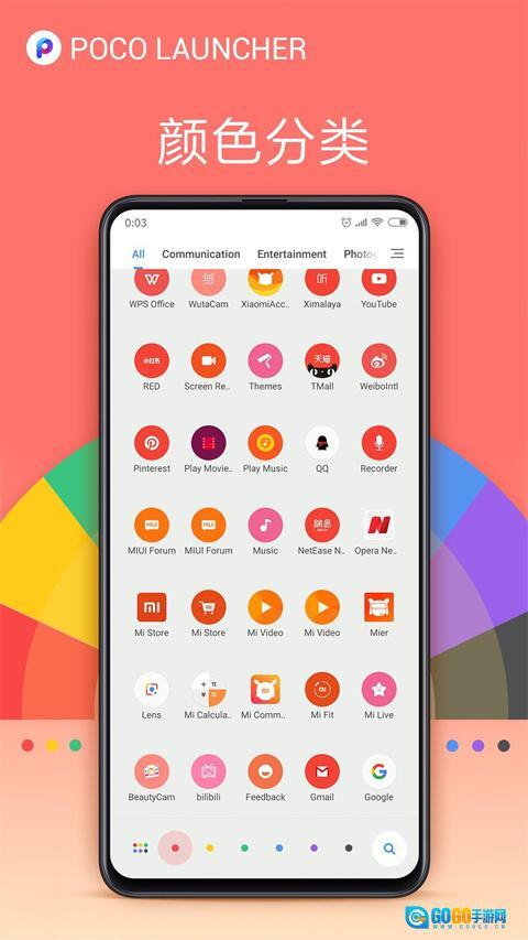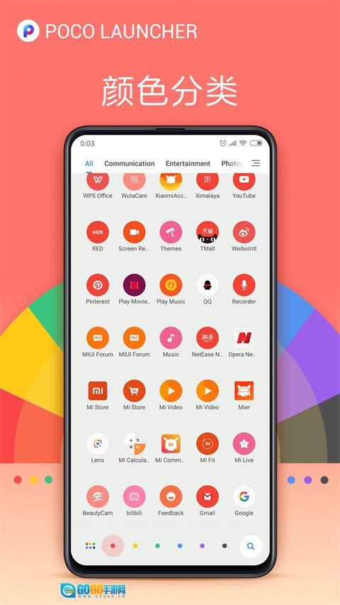 智能分类功能创新性地打造了一套基于颜色的应用分类系统,用户可借助底部色标快速筛选应用,系统还提供自动分组与手动分类两种模式,大幅提升应用管理的效率与便捷性。