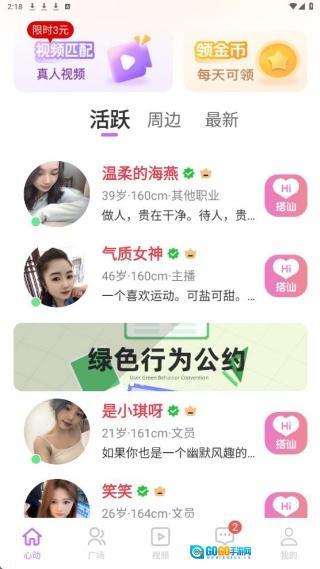 心动页面推荐了不少活跃用户,我们能轻松认识他们并打招呼。