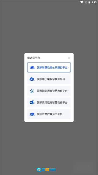 完成智慧教育的安装后,首次打开应用时需要选择对应的教育平台入口。