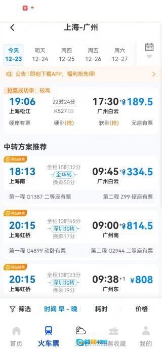 系统在呈现车次信息时,会综合考量发车时间、行程时长、经停站点等重要因素,助力您迅速筛选并找到最契合需求的班次。