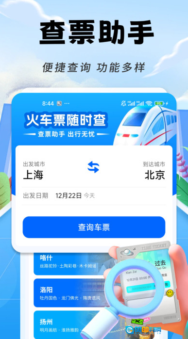 “铁路火车票随时查”是一款能够实时查询高铁与火车票信息的便捷工具。用户只需进行定位并输入目的地,就能迅速获取授权范围内的余票、车次以及票价详情,助力用户高效掌握精准的票务动态,为线下购票或行程安排提供明确的参考依据,从而节省查询所需的时间。