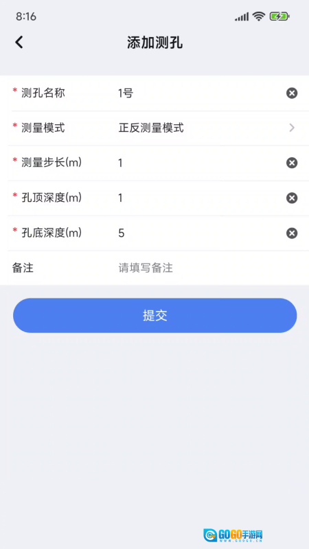 进入添加测孔的界面后,录入相关信息,直接点击提交按钮就行。