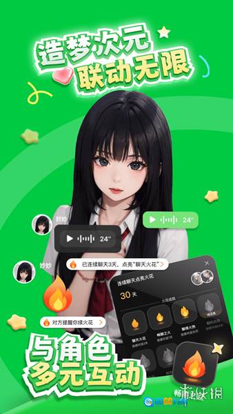 软件支持用户和个性鲜明的二次元角色展开实时互动,一同体验丰富多样的剧情探索、游戏娱乐与内容创作等场景。