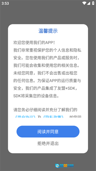 阅读并同意用户协议与隐私政策后,点击进入应用。