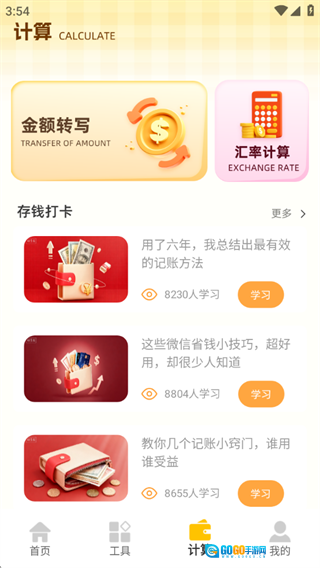 可以实现金额转写、汇率计算,还能学习存钱的方法与技巧。