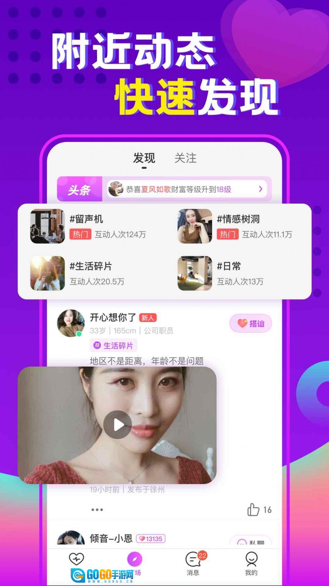 同城陌交是一款契合年轻人需求、能带来便捷互动体验的手机交友软件。它采用安全社交模式,消息发送毫无延迟,一键对话的设计十分便捷;平台还具备通讯录查看与管理功能,新朋友打招呼时我们能即时知晓并快速回复,大家也可以在这里展示自己的生活动态。