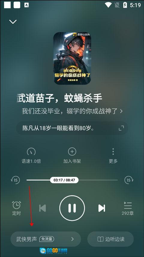 进入听书界面,点击下方的声音进行切换。