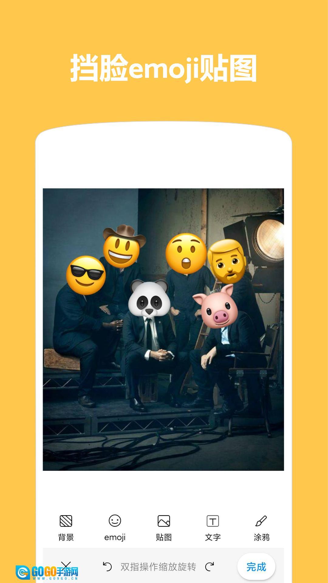 Emoji表情贴图,给你的图片添加Emoji表情,海量Emoji表情贴纸,支持给图片添加文字,自定义Texture,涂鸦,滤镜,图片旋转,多种滤镜效果