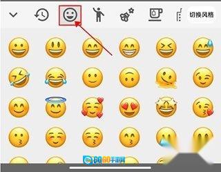 在小表情页面,点击左侧的“切换风格”按钮,就能开启emoji风格的切换操作。