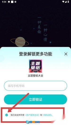 当主题壁纸应用第一次打开时,系统会优先呈现隐私政策与使用协议页面,请您认真阅读相关条款,之后点击“同意”按钮,即可继续使用该应用。