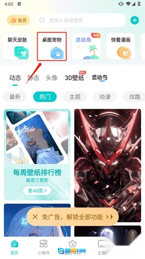 进入首页,点击"桌面宠物"功能入口。