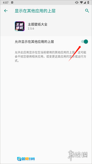 根据系统提示,开启“允许在其他应用上层显示”权限。