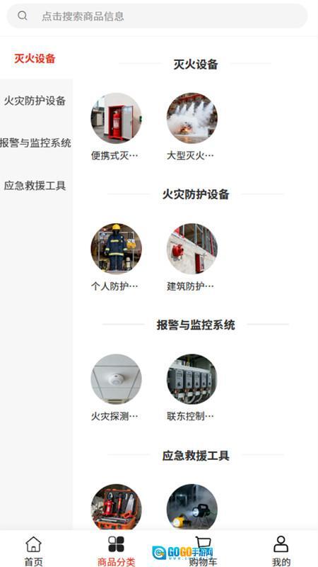 汇集多功能消防腰斧、便携式灭火器、个人防护装备等多种器材,按家庭备用、专业消防等场景分类展示,方便快速查找。
