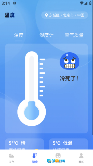 进入【温度】页面后,能够查看详细的温度信息,还可以使用手机温度计功能。