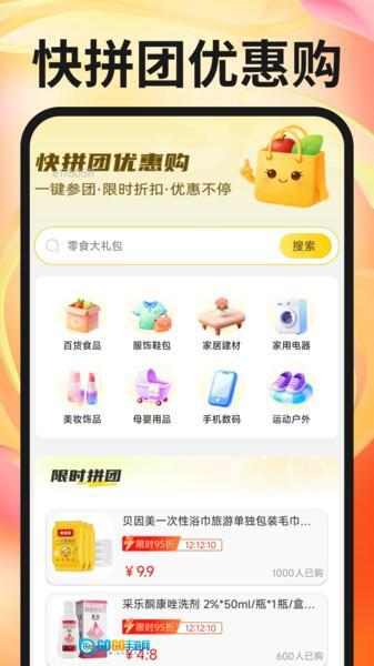 快拼团优惠购是一款优质又省钱的购物平台,这里在线商品种类丰富,网购活动也多,是个灵活度高、品质好的购物平台。你可以自定义搜索自己喜欢的热门商品,平台还支持拼团活动,大量优惠券能一键领取,让你每次购物都特别省钱,是个很便利的购物平台。