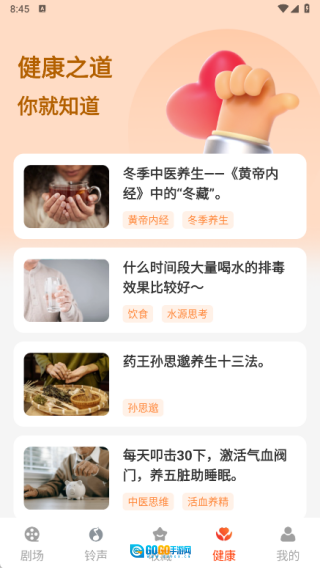 健康页面上呈现着最新的健康相关知识,用户能够随时学习这些前沿内容。