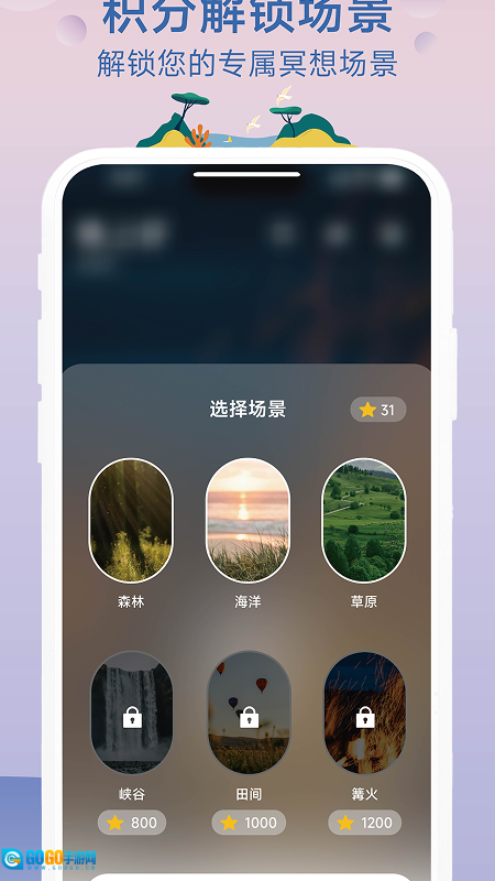 除了基础场景,用户还能通过冥想积累积分来解锁峡谷、篝火等特色场景,从而增强冥想的趣味性。