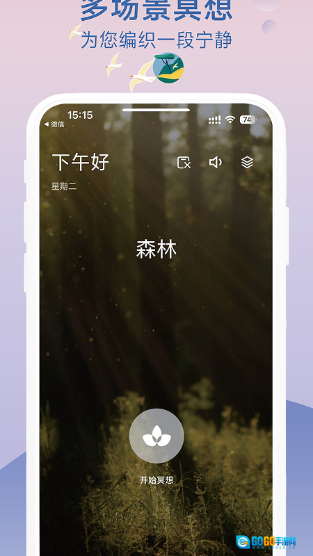 支持多场景自由切换,冥想过程中可随时切换不同场景,适配不同情绪状态下的放松需求。