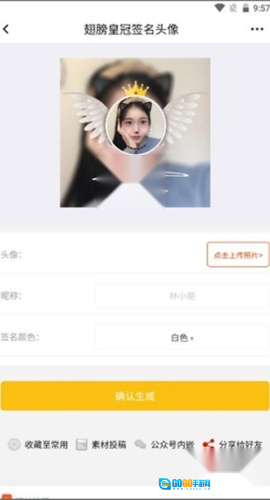 进入你选好的生成器界面后,上传自己的头像,输入昵称,挑选签名颜色,最后点击“确认生成”按钮就可以了。