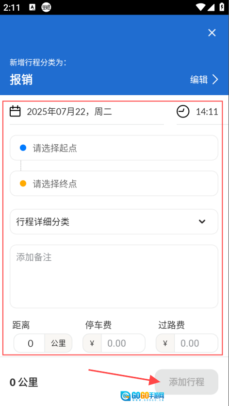 按提示输入相关内容,点击【添加行程】按钮即可。