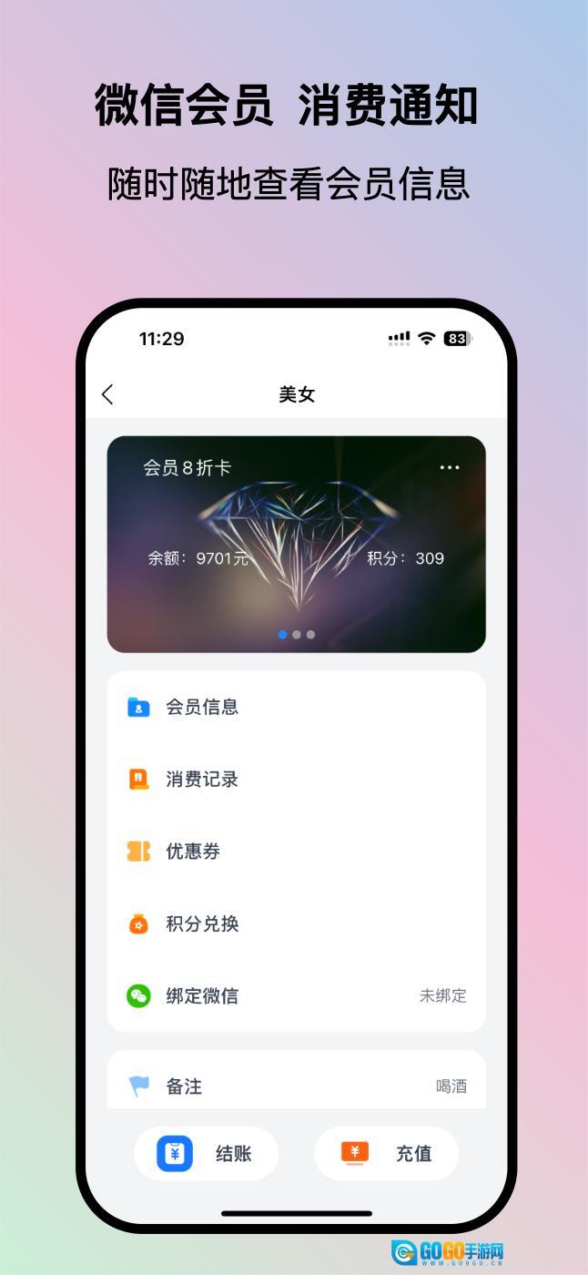 摆脱了必须使用电脑才能使用会员卡的束缚。