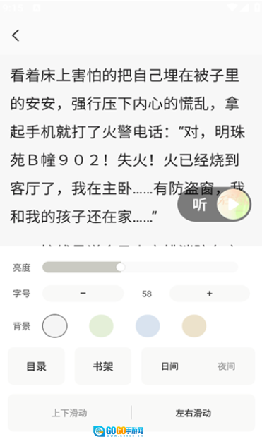提供听书模式,支持语音朗读功能,解放用户双眼,实现随时随地畅听小说。