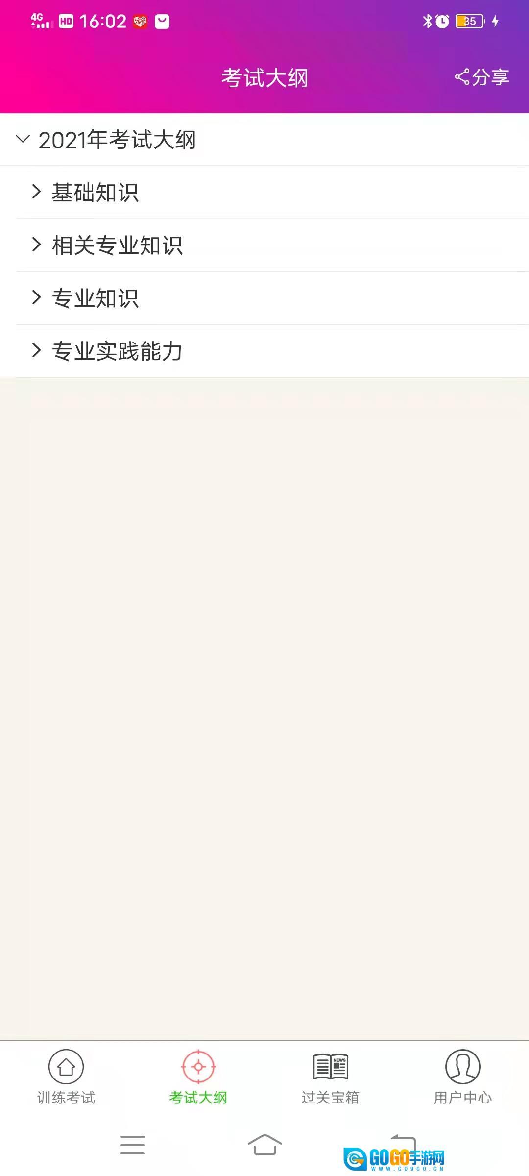在“过关宝箱”页面,你可以找到考试大纲、考试动态以及复习资料,这些内容能帮助你全面掌握备考所需的各类信息。