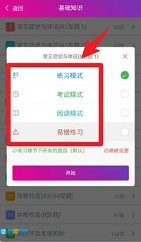 选择任意题目后,可切换至练习模式、考试模式、阅读模式或易错练习模式,以便灵活安排复习方式。
