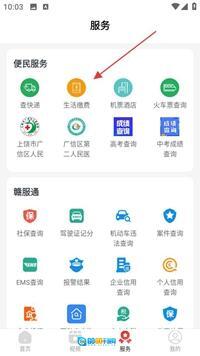 服务页面涵盖了便民服务与赣服通等多个功能板块,其中便民服务包含查快递等实用功能,赣服通则提供社保查询等各类服务。