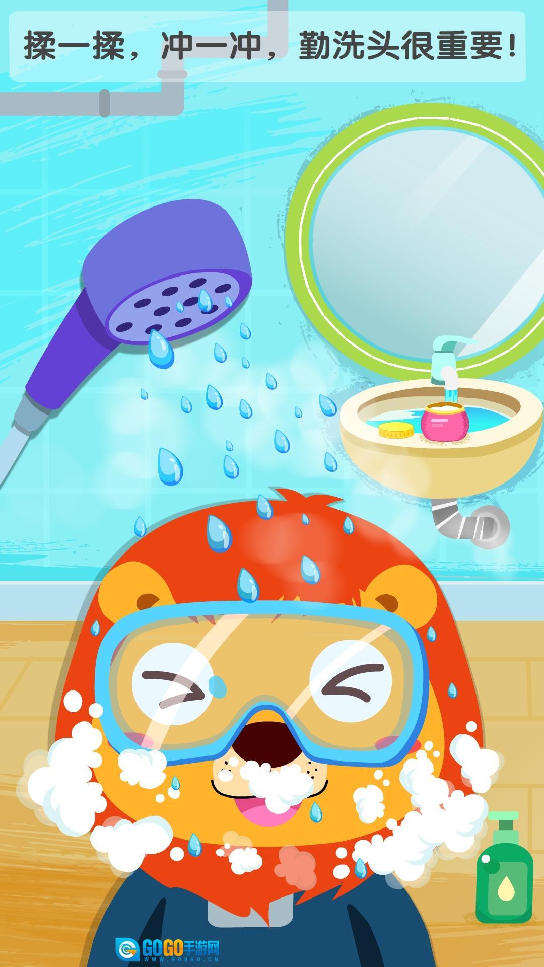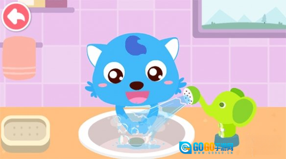 进入游戏后,需要对不爱卫生的小动物们进行清洗。