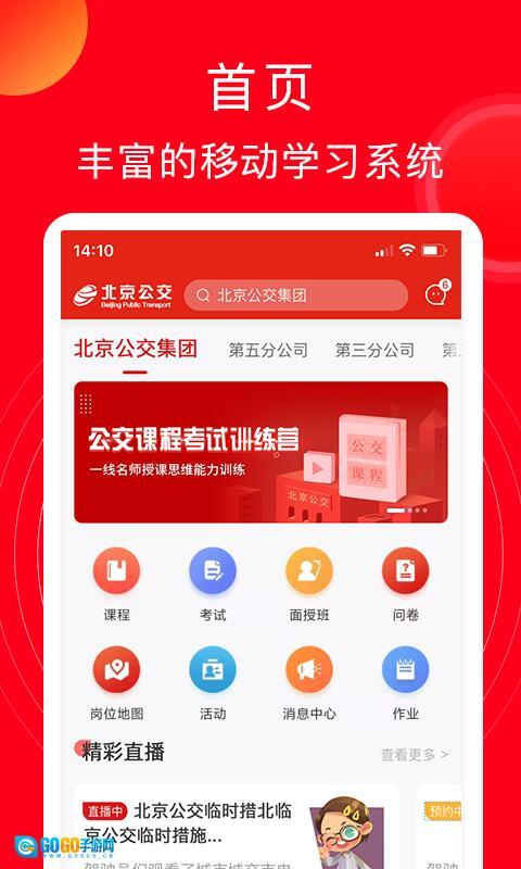 公交云课堂是一款实用性很强的学习软件,平台上汇聚了种类丰富的教学课程,可供用户参与培训学习。依托这个平台,用户能体验到“学、练、考、评、测”五位一体的线上学习模式,可利用日常碎片化时间完成学习任务。同时,用户还能在线观看直播课程,由专业讲师针对难点知识进行讲解;软件还配备了专业的考试测试功能,方便用户进行自我评测,及时了解学习成效。这款软件操作简便,是公交从业者提升自我的得力助手。