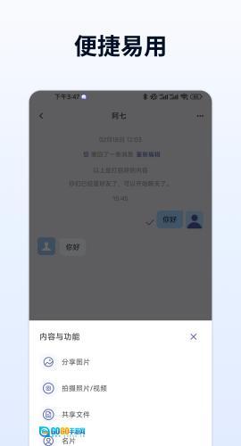 即时通讯功能:支持以文本、语音、图片、文件等多种形式开展沟通,保障交流高效且顺畅。