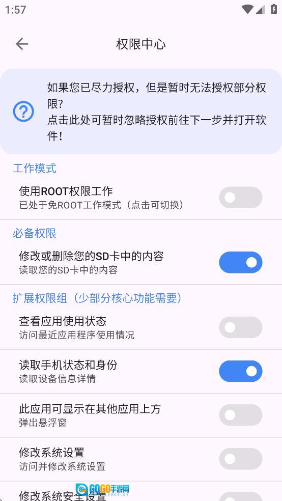 打开爱玩机工具箱应用,并授予其必要的权限。