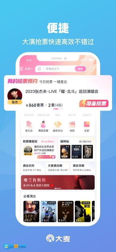 大麦手机客户端能为众多网友在线预订各类演唱会、音乐会、话剧以及体育赛事的门票,既便捷实惠,又高效省心。
