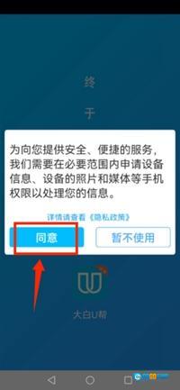 打开大白U帮应用,在权限申请页面选择同意选项完成授权。