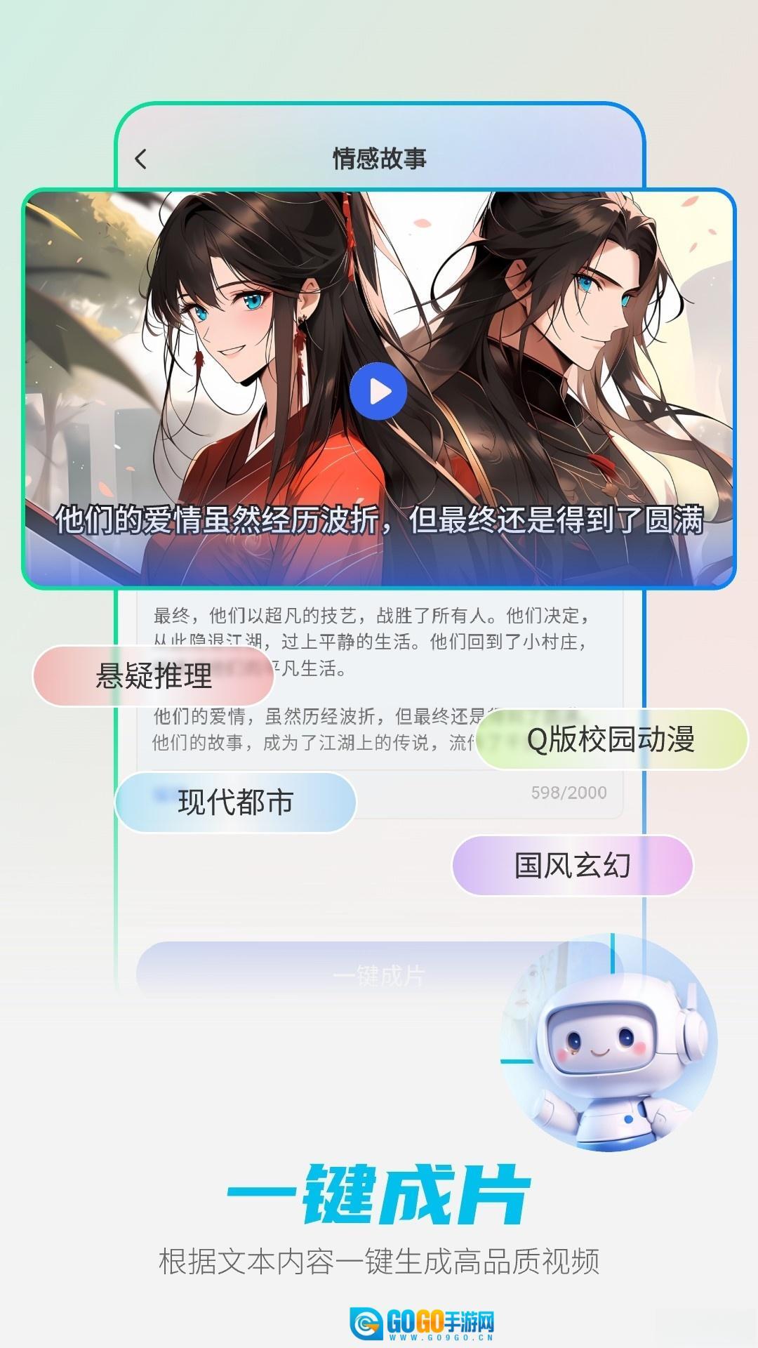视频制作变得极为便捷:AI一键成片的功能十分强大,不需要进行复杂的剪辑操作,只要输入素材和相关要求,就能生成引人注目的短视频,帮助用户轻松在平台发布内容赚取流量。