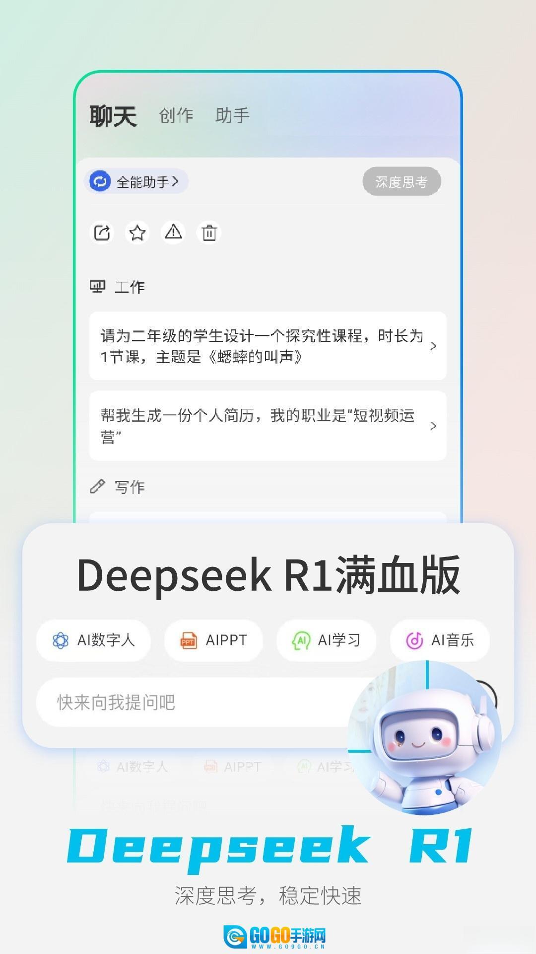 《DeepAI智能助手》是一款功能丰富的智能工具,整合了聊天对话、视频制作、AI绘画、写作等多种实用功能。依托全新AI大模型,它能提供专业的问答、创意的创作等服务,帮助用户轻松处理各类文字相关任务,更支持一键生成视频获取流量,为用户开启智能生活的全新体验。