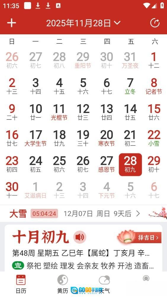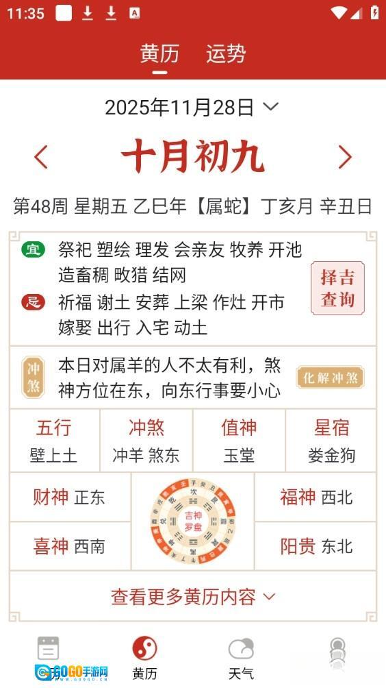 农历查询、黄历查询、宜忌查询、择吉日等;
