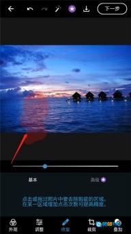 7、点击第三个修复图标,便能进行局部图片修补或替换。用手指涂抹想要替换的部位,随后会发现涂抹之处变成了红色。
