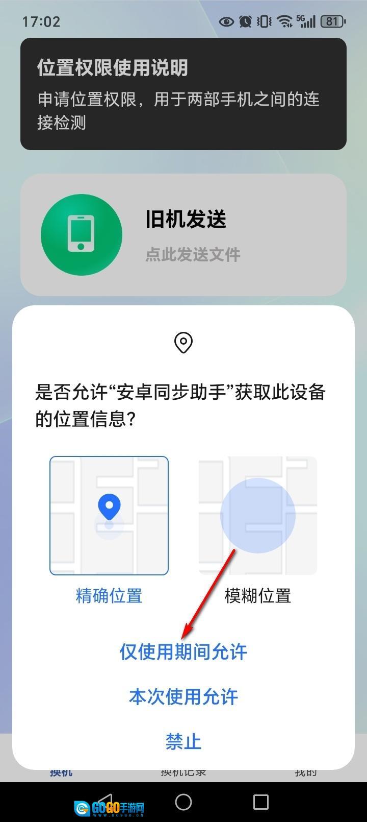 点击【仅使用期间允许】