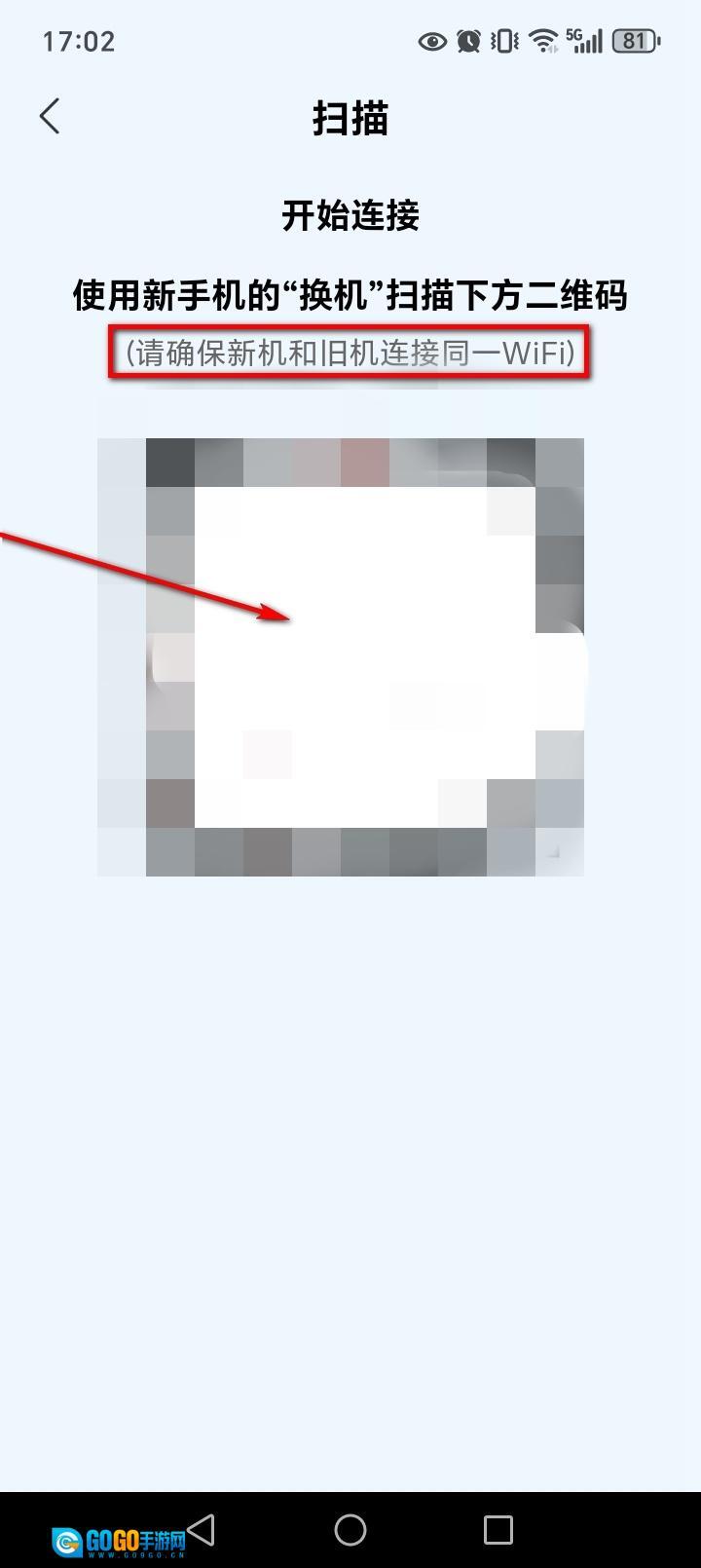 可以看到一个二维码,注意新旧手机需连同一wifi