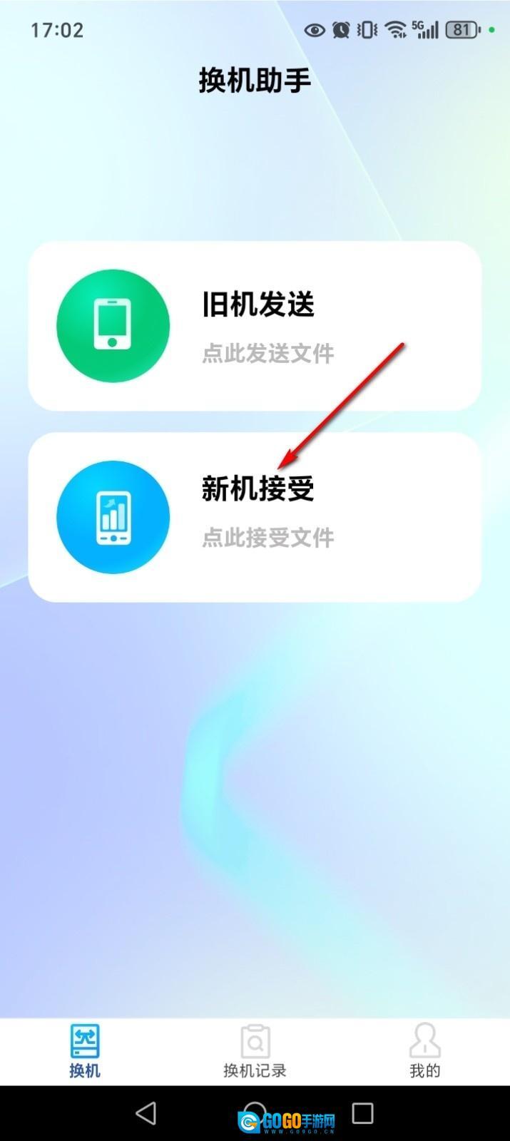 新手机进入软件点击【新机接受】