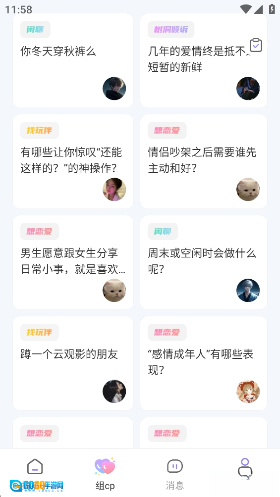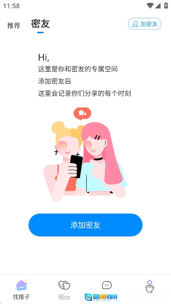 《Cojoy》是天津飞遇科技有限公司打造的一款用于找搭子、组CP的应用。在这里,你能添加密友,分享专属于彼此的精彩瞬间;也能参与各类话题,寻觅志同道合的CP伙伴;还可以寻找搭子,浏览众多用户发布的帖子并进行互动交流,同时能关注心仪的人,将其收藏到自己的列表中。