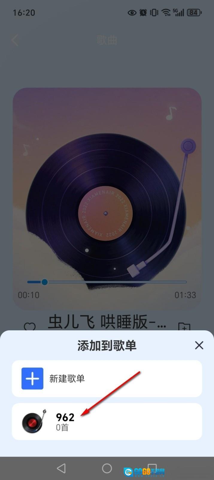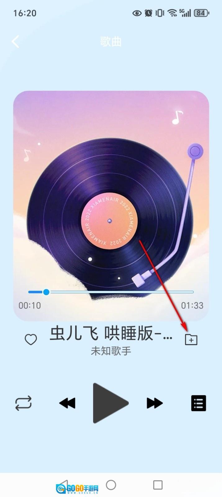 在歌曲播放界面点击【+】